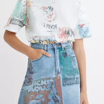 Desigual Women's Blue Printed Cotton Skirt with Pockets